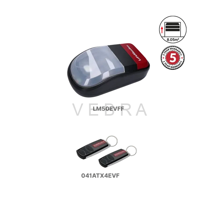 LiftMaster LM50EVFF1 je kompaktní a spolehlivý 24V pohon pro sekční garážová vrata o hmotnosti do 80 kg, šířce do 3,5 metru a výšce 2,3 metru. Pohon má integrované LED osvětlení a moderní, kompaktní design. Podporuje technologii myQ, která umožňuje ovládání vrat odkudkoli prostřednictvím chytrého telefonu, tabletu nebo počítače.